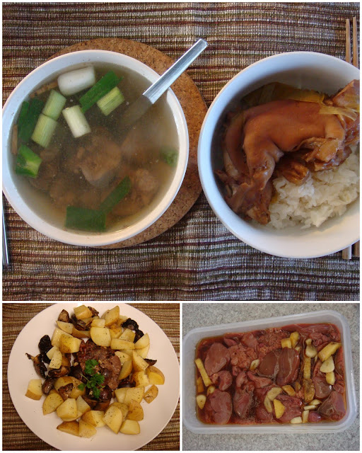 - 跑活水:把豬腳放在冷水裡,小小小火煮三十分鐘,不要讓水滾。髒水倒掉,用清水把豬腳洗乾淨。